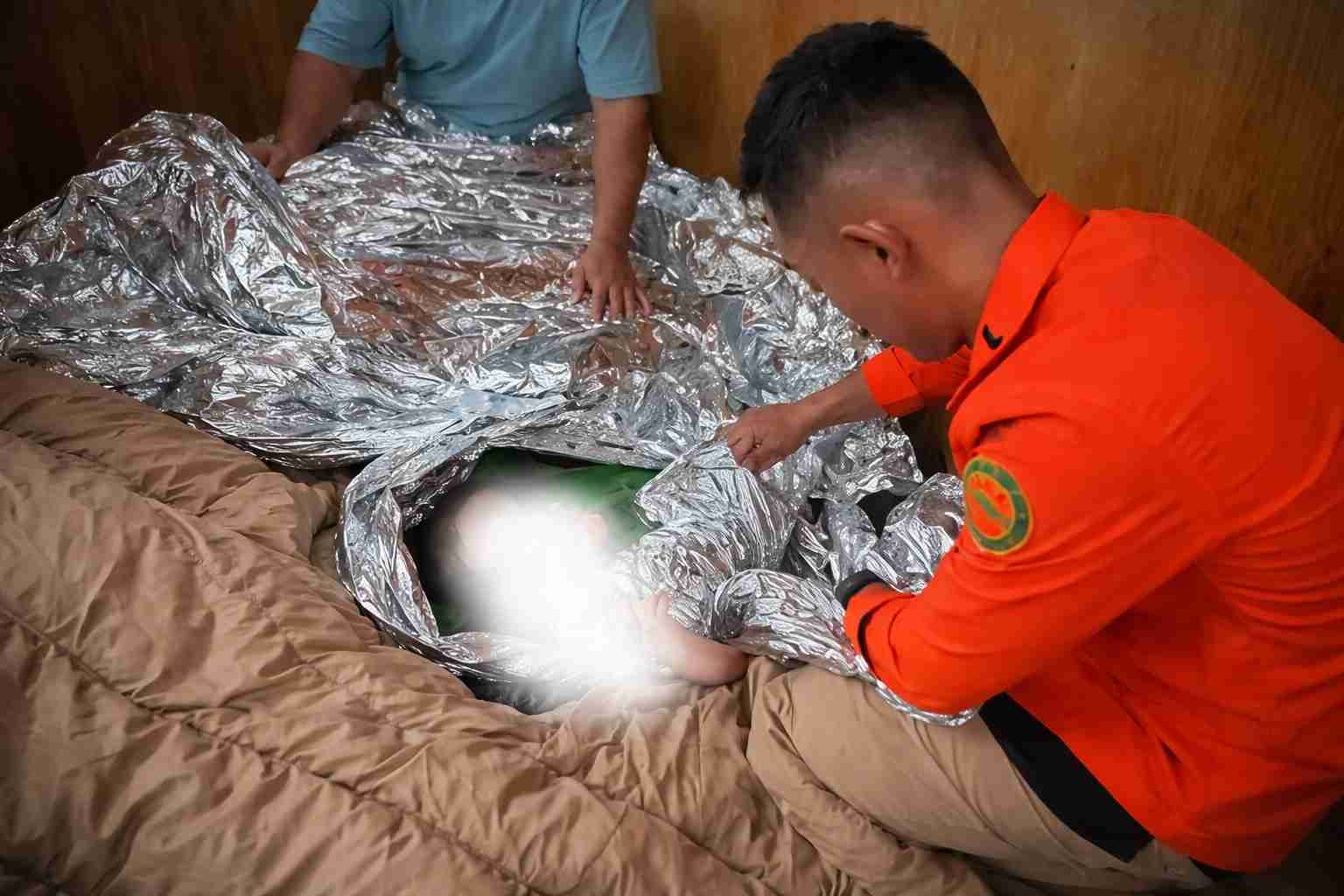 Tim SAR yang berada di sekitar lokasi langsung bertindak. Mereka menenangkan bayi dan memberikan selimut darurat untuk menjaga kondisi tubuhnya.