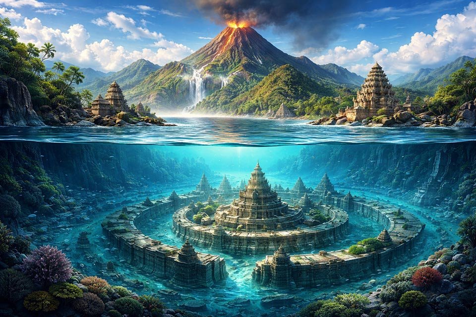Atlantis di Indonesia: Antara Fakta Geologi dan Imajinasi Peradaban yang Tenggelam. (Ilustrasi: Tabooo)