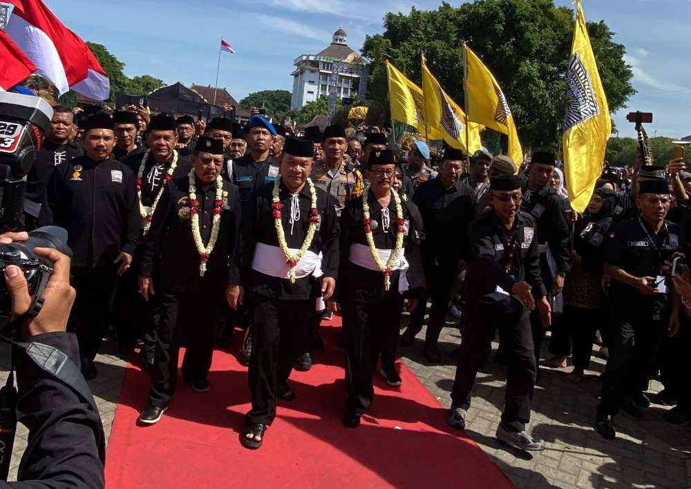 Tabooo.id: Life – Pagi itu, Alun-alun Ponorogo tidak hanya dipenuhi manusia. Alun-alun Dipenuhi napas, langkah pelan, dan gumam doa yang mengalir seperti sungai sunyi. Ratusan ribu pesilat Persaudaraan Setia Hati Terate (PSHT) berdiri berimpitan, mengenakan busana serba hitam warna yang selama ini identik dengan kekuatan. Namun pagi itu, warna hitam tidak tampak garang. Ia justru terlihat teduh.