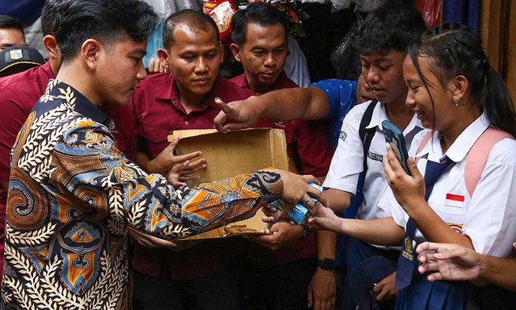 Wapres Gibran Rakabuming Raka saat berikan bantuan susu kepada murid smp beberapa waktu lalu. (Foto:Istimewa)