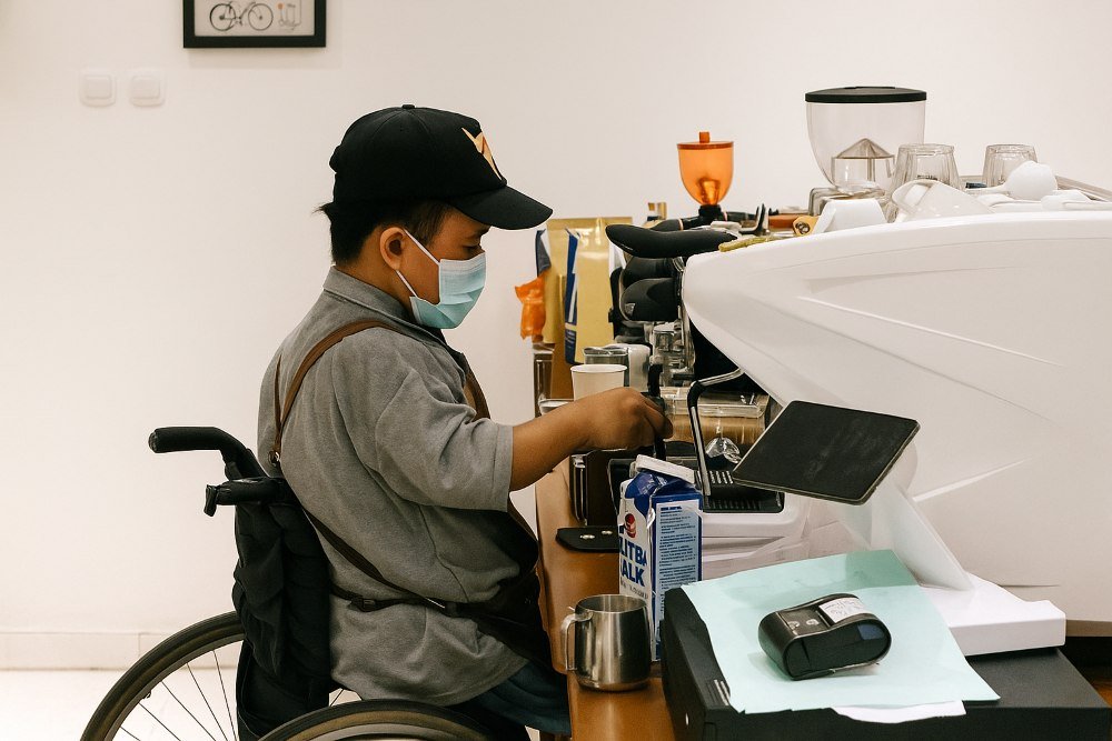 Eko adalah salah satu barista difabel di Cupable Coffee, kafe inklusi yang memberi ruang kerja bagi penyandang disabilitas. Bagi Eko, setiap cangkir kopi bukan hanya pesanan pelanggan, tapi bentuk pembuktian diri: bahwa keterbatasan bukan alasan untuk berhenti bermimpi.