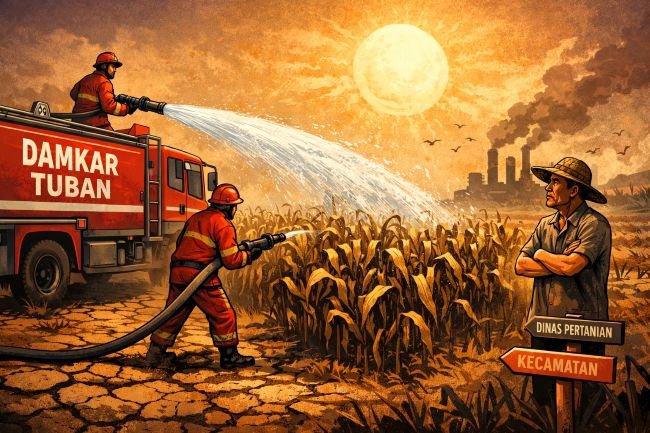 .Plt Kepala Satpol PP dan Damkar Tuban, Sutaji, membenarkan peristiwa itu terjadi pada Rabu (01/04/2026) di Kecamatan Merakurak. Ia menerima laporan langsung dari warga dan langsung mengecek situasinya “Iya saya dapat laporan dari warga seperti itu minta bantuan kami menyiram lahan jagung,” ujarnya.