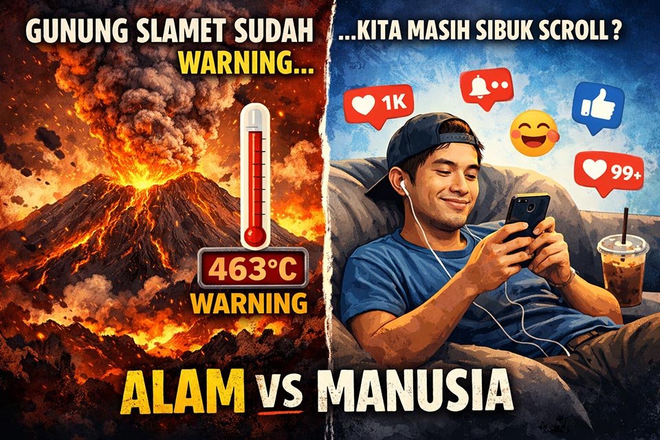 Kita hidup di era di mana realita harus lolos seleksi algoritma dulu sebelum dianggap nyata. Gunung memanas? Tidak trending. Artinya, tidak urgent. Tapi begitu ada video letusan, suara gemuruh, atau footage dramatis, baru semua orang bergerak… share, panik, dan jadi “ahli dadakan”.