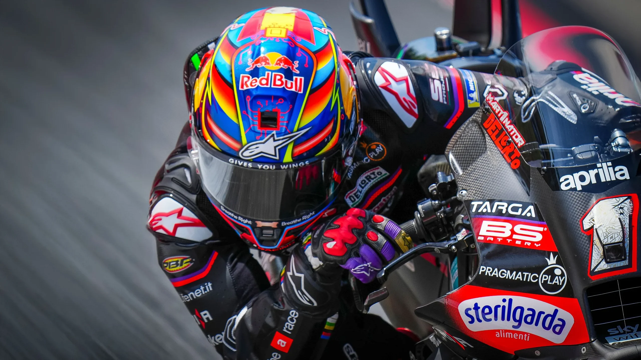 Yup, pebalap Aprilia Racing itu turun ke lintasan Barcelona-Catalunya dengan helm custom hasil kontes global “Fan Design Challenge” yang digelar lewat game resmi MotoGP™25. Ribuan peserta dari lebih dari 50 negara ngirim desainnya, tapi cuma satu yang berhasil bikin Martín jatuh cinta, dan langsung dibikin versi nyata untuk dipakai di balapan.