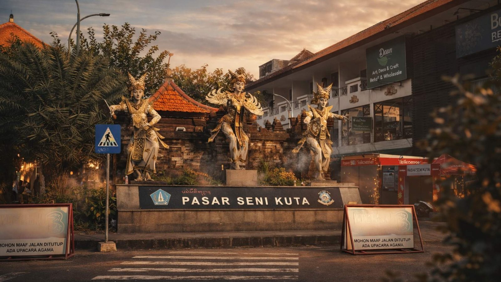 Pasar Seni Kuta tetap buka. Lapak-lapak berdiri seperti biasa. Barang-barang masih tergantung, menunggu dilihat, disentuh, lalu mungkin dibawa pulang.
