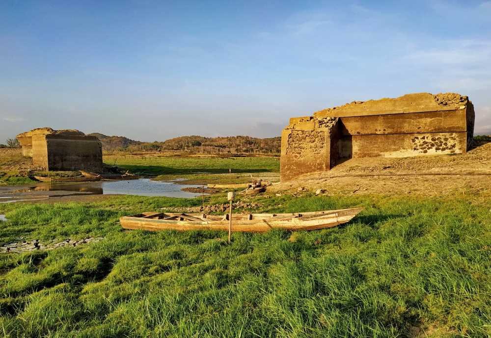 Kini waduk terlihat tenang. Permukaannya tidak menunjukkan apa pun yang tersembunyi di bawahnya.