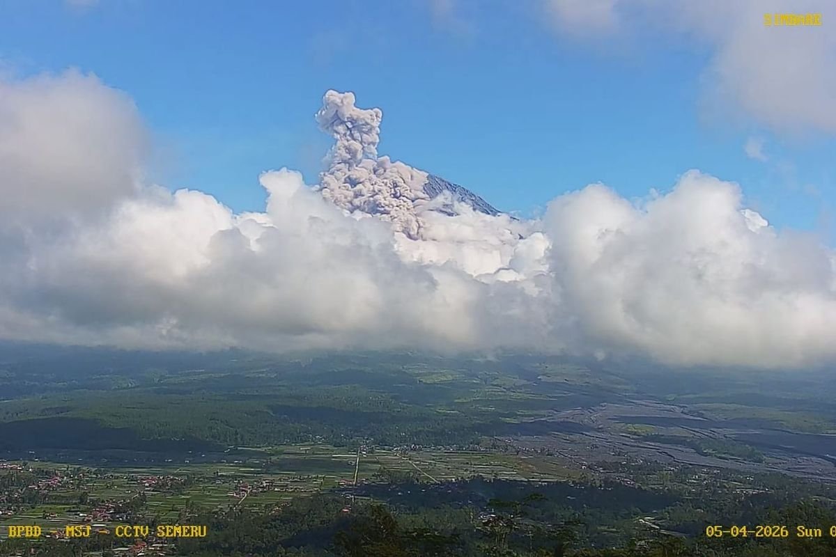 Visual erupsi Gunung Semeru yang meluncurkan awan panas sejauh 3 kilometer, Minggu (5/4/2026) pagi. (Foto: PVMBG)
