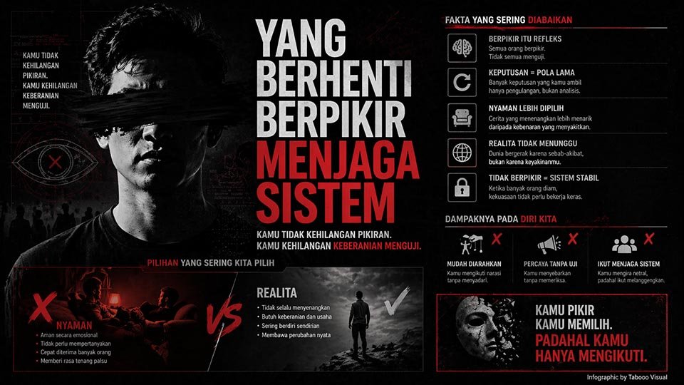 Orang yang tidak berpikir menjadi bagian dari sistem itu sendiri. Mereka tidak hanya diam. Mereka ikut menjaga.
