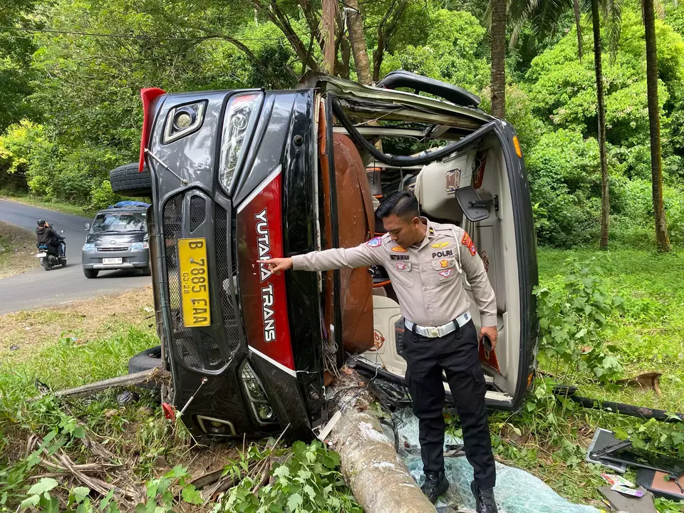 Sopir Diduga Mengantuk, Mikrobus Rombongan Wisata Kecelakaan di Banten