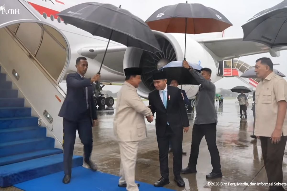 Presiden RI Prabowo Subianto tiba di Lanud Halim Perdanakusuma, Jakarta, Jumat (27/2/2026) pagi. (Foto: YouTube Sekretariat Presiden)