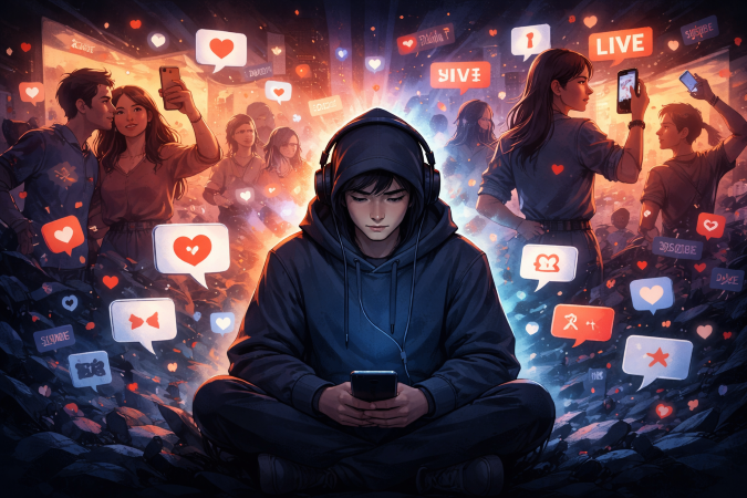 “Media sosial dulu terasa seperti ruang bersama, sekarang lebih mirip panggung yang terus meminta performa.”